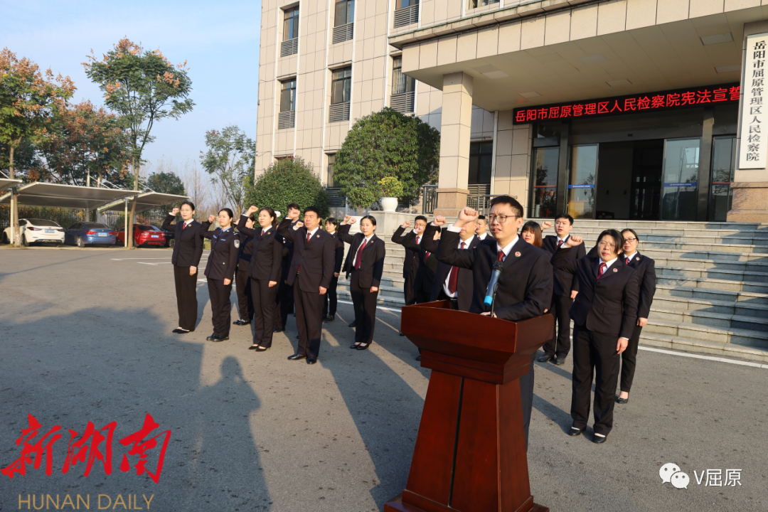 为深入学习宣传贯彻党的二十大精神,深刻领悟习近平法治思想,弘扬宪法精神,维护宪法权威,教育和激励检察干警强化使命担当,依法忠诚履职,12月4日上午,岳阳市屈原管理区人民检察院举行宪法宣誓仪式,党组书记、检察长佘君卫监誓,全体干警、书记员参加。
