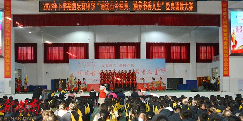 12月1日,汉寿县詹乐贫中学全体师生齐聚学校体艺馆,举行以“诵读古今经典,涵养书香人生”为主题的经典诵读大赛决赛活动。