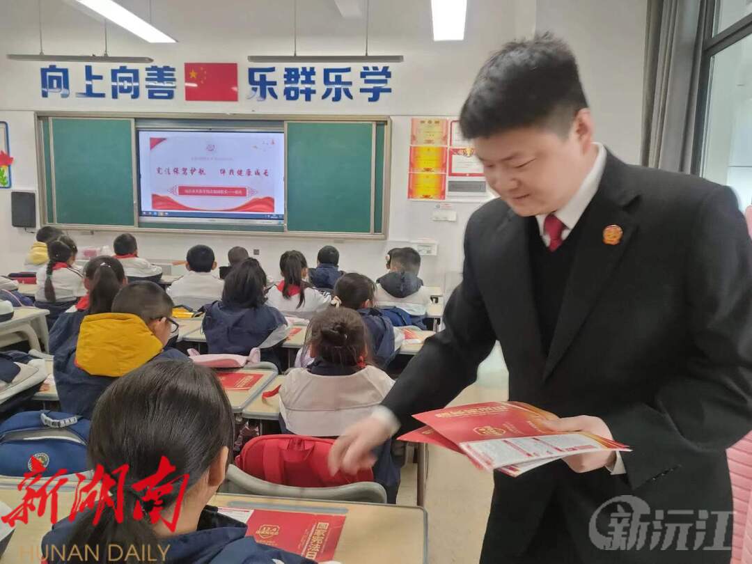活动中,沅江市芙蓉学校邀请市人民法院工作人员给学生做了以《宪法保驾护航 伴我健康成长》为主题的讲座。工作人员用通俗易懂的语言向孩子们详细介绍了国家宪法日及宪法相关知识。讲座内容深入浅出,赢得了在场师生的阵阵掌声。随后,工作人员还走进班级,和孩子们面对面交流,让宪法知识进一步入脑入心。