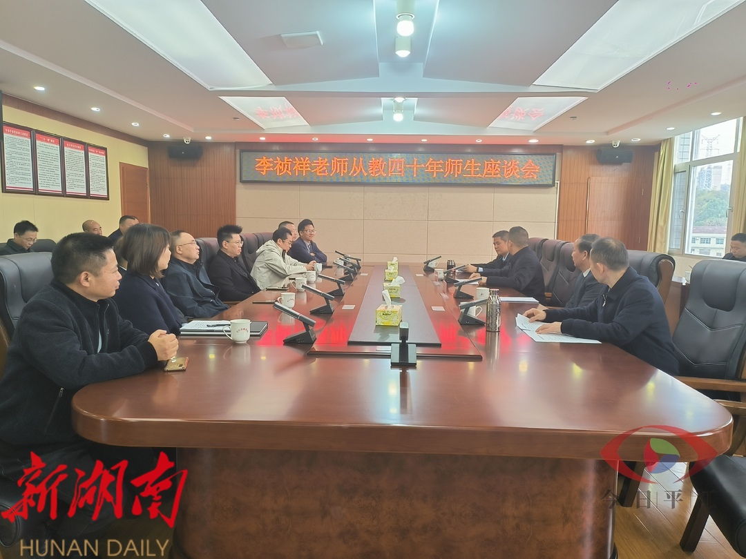 听闻老师即将退休,学生们纷纷从全国各地赶回参加此次的座谈会。会上,李老师回顾了自己四十年的从教经历,并对此次座谈会的举办表示感谢,同时他也寄语平江的新青年教师,要教好书、多学习、常感恩。学生们向老师献上鲜花和牌匾,来表达对老师的诚挚祝福和崇高敬意。他们深情回忆了李老师在工作、学习、生活方面对自己点点滴滴的关心和帮助。到来的学生中,有的是企业家,有的是人民的“公仆”,但也有学生接下了李老师手中教育的接力棒,选择成为和李老师一样的教育工作者。徐雄就是其中一位,他现在是平江二中的一名老师。