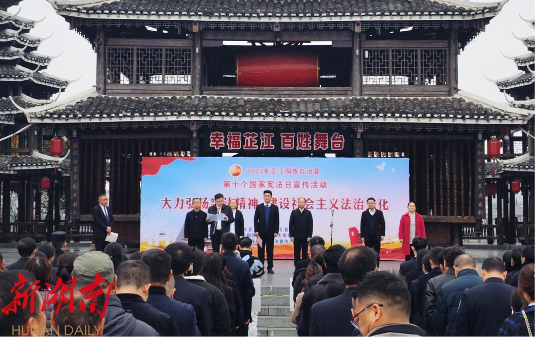 湖南日报·新湖南客户端12月5日讯(通讯员 尹菲 周清)为进一步弘扬宪法精神,树立宪法权威,12月4日,芷江司法局联合25余家县直单位在鼓楼广场主会场开展了以“大力弘扬宪法精神,建设社会主义法治文化”为主题的第十个国家宪法日宣传活动,同时各乡镇充分利用宣传节点进行宣传活动,以点带面,进一步增强人民群众的宪法意识。