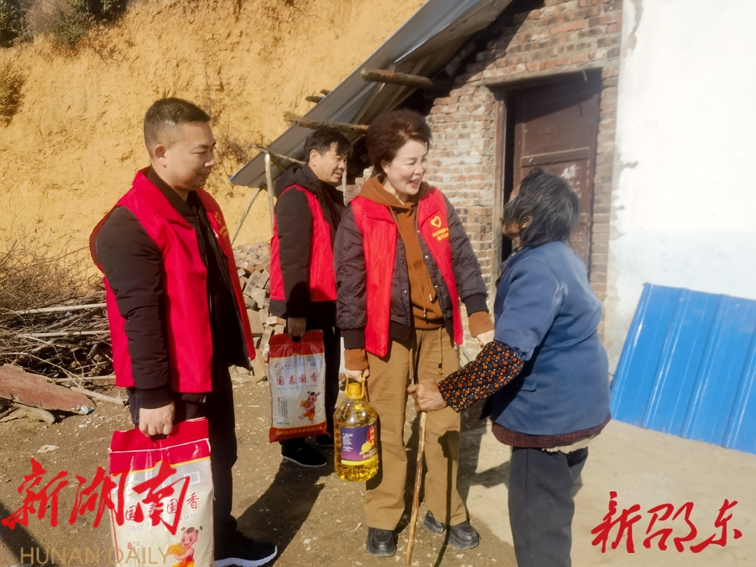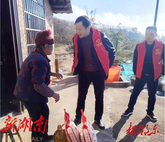 当天上午,邵东市融媒中心党支部书记、主任申志坚带领全体班子成员、帮扶队员和党员志愿者来到新福村,分组对村里的脱贫户、困难户等进行走访,为帮扶对象送去大米、食用油等慰问物资,跟他们聊天拉家常,详细询问他们的“两不愁三保障”及安全饮水情况,宣讲乡村振兴相关政策,逐一核实家庭人员信息,确认家庭年度收入,并填写好帮扶手册。