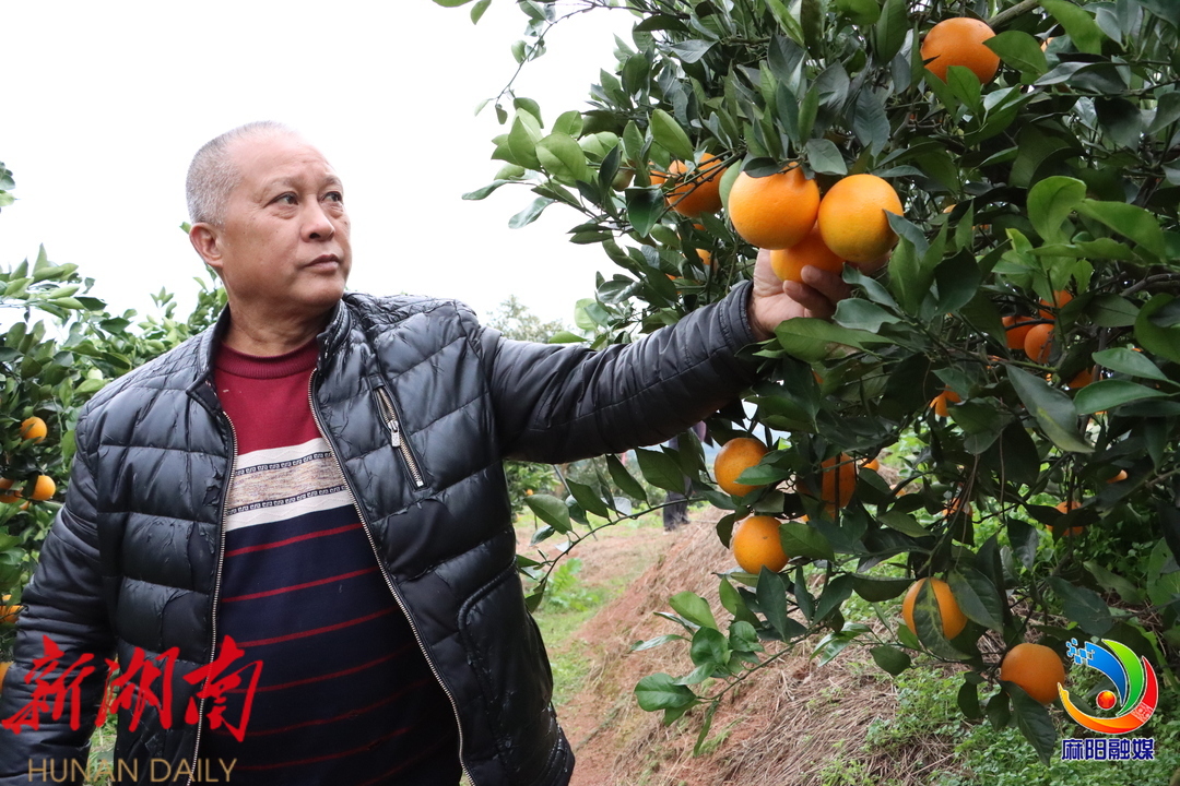 12月6日,走进麻阳高村镇绿溪口村种植户谭世清的“锦和”冰糖橙种植园,一颗颗橙红的果子,色泽光鲜,果香阵阵,谭世清正在查看果树长势以及产量情况。“锦和冰糖橙的特点就是果红、果大,它的甜度达到了 十九 点几,它口感细腻,有浓厚的橙香味。通过施用有机肥等生态化种植方式,品质很好,销售相当可观。”谭世清笑着说,他园里的“锦和”冰糖橙已经抢着被预定了,每斤卖到8块钱。