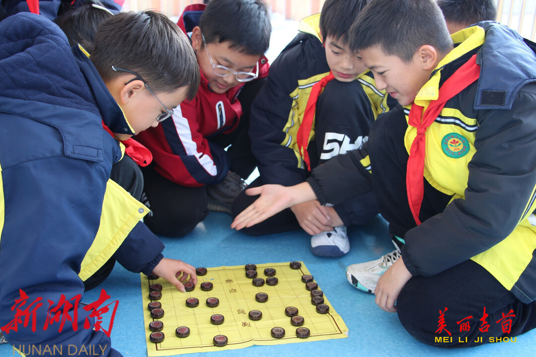 走廊上,有的不亦乐乎地玩起“单脚跳接力”,有的自成小队玩着自己创编小游戏,也有随处可见认真阅读的孩子们;教室里,“扳手腕”、象棋、军棋、挑花绳等,欢声笑语久久未消散。“我们都很喜欢课间活动,可以干自己喜欢的事。”六年级学生向树政开心地说。“ 课间10分钟不长,但对于学生的快乐成长却很重要。我们鼓励孩子们走出去动起来,营造‘轻松愉快自信的校园’氛围。”该校负责人说。