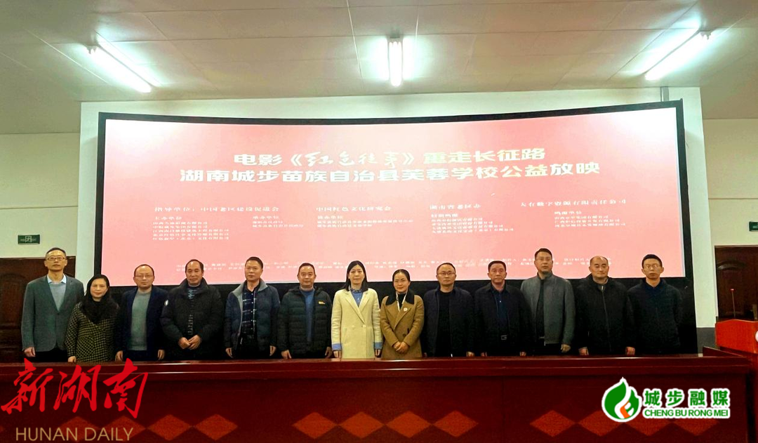 新城步客户端12月7日讯 (见习记者 王鲲 )12月6日,在中央红军长征到达城步苗族自治县89周年之际,由中国老区建设促进会、中国红色文化研究会、湖南省老区办、大有数字资源有限责任公司作为指导单位,久盛影视、中财诚发集团有限公司、北京红色往事文化传媒有限公司、红色新星(北京)文化有限公司联合主办的电影《红色往事》重走长征路公益放映活动在城步芙蓉学校举行。 邵阳市老区办主任肖艳敏、县人大常委会副主任漆小玲、 县政协副主席刘双丰及部分县机关干部、芙蓉学校师生、红色文化志愿者等300余人观看了影片。