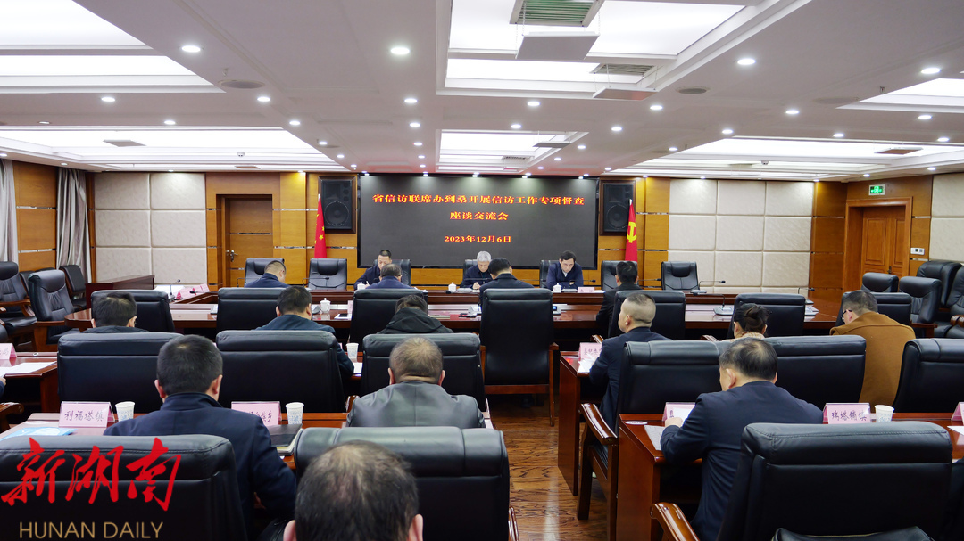 湖南日报·新湖南客户端12月7日讯 (记者 陈中化)12月6日,由省信访局督查处一级调研员潘永杰带队的省信访联席办督查组来桑开展信访工作专项督查并召开座谈会。副市长、市公安局局长龙铁军,县委副书记、县长梁高武,副县长、公安局局长刘克敏出席座谈会。