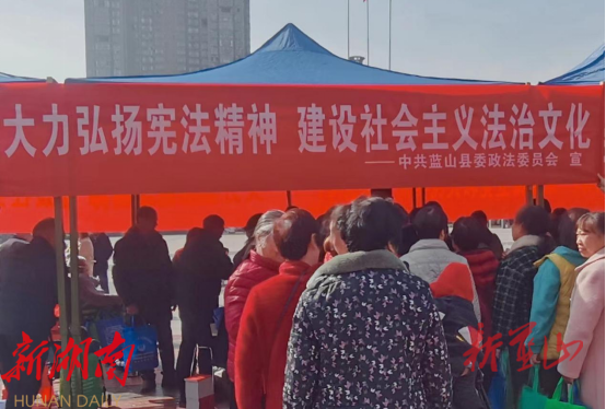 ▲12月5日上午十点,蓝山县2023年“宪法宣传周”主题活动在三蓝广场举行,县委政法委联合县法学会、县“利剑护蕾”专项行动领导小组办公室,开展多样化法治宣传活动。(通讯员 王芳)