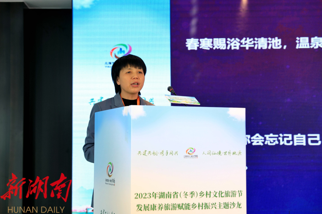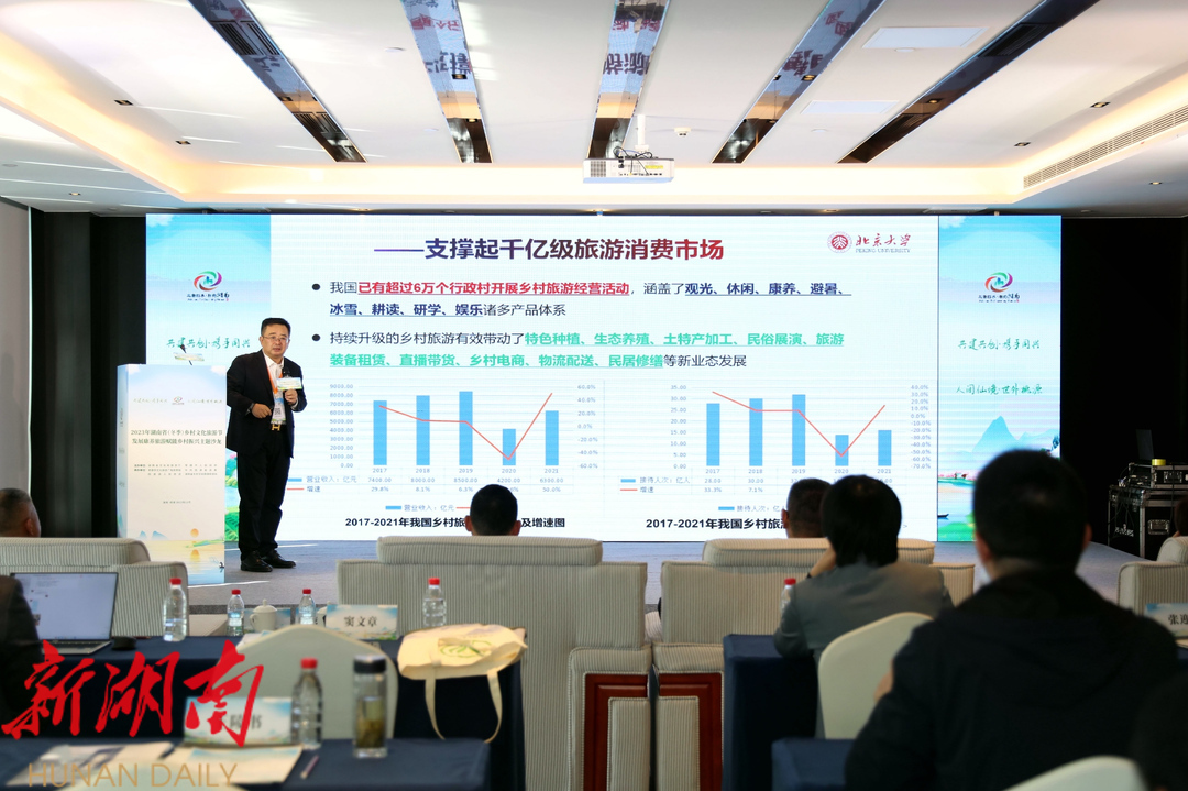 活动中,中南林业科技大学副教授、湖南省文化和旅游厅中南林业科技大学基地副主任谢冽,北京大学教授、北京大学战略研究所副所长、中国旅游协会休闲农业与乡村旅游分会会长窦文章分别以“康养旅游动态与产品创新”“拥抱心旅游时代,打造乡村生态旅游目的地”为主题发表了主旨演讲。