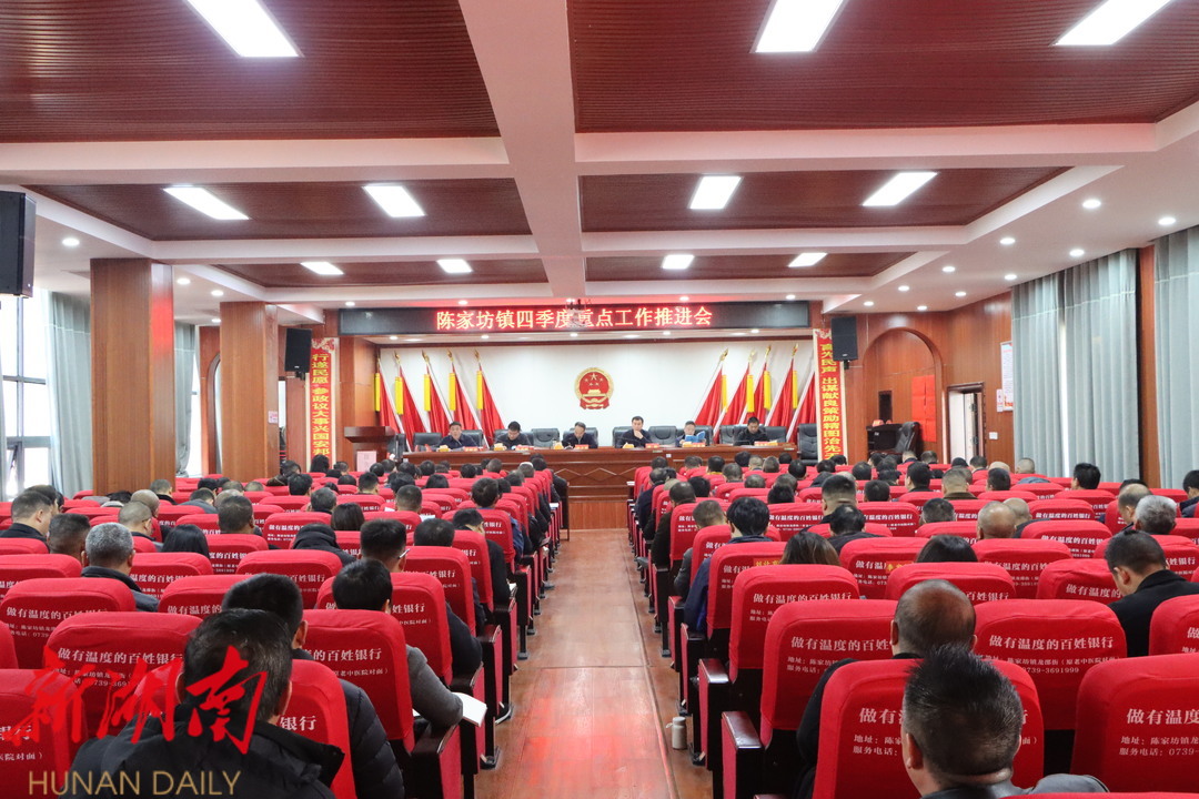 谢小军对陈家坊镇历年来的工作给予肯定。他强调,针对当前部分指标排名靠后的情况,全镇上下要清醒认清形势,本着对人民群众、对镇域经济社会发展高度负责的态度,着力推进各项重点工作,坚决扭转当前被动局面,确保圆满完成全年任务。要迅速转变工作作风,对当前存在的问题进行深入剖析,做到事不避难,紧盯不放,对症下药,以问题整改的实效推动各项工作上台阶、提质效。要全面夯实工作基础,坚决采取有力措施抓好禁毒、反电诈、缅北窝点人员劝返等重点工作,守护好一方平安。