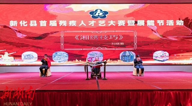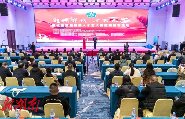 湖南日报·新湖南客户端12月7日讯(通讯员 游进 黎明明)12月6日,新化县举办首届残疾人才艺大赛暨展能节活动,进一步丰富残疾人精神文化生活,促进残健融合发展,引领广大残疾人听党话、感恩党、跟党走。省残联宣文基部部长黄征兵,娄底市残联理事长曾鹏程、副理事长周明志到场指导。新化县委副书记、县委政法委书记、县残联名誉主席李峰出席并宣布才艺大赛和展能节开幕。县人大常委会副主任曾令斌、曾欣华,副县长刘志军,县总工会党组书记、常务副主席伍玉章出席。县残联、县文旅广体局、县文联、县妇联、团县委等相关单位负责同志参加。
