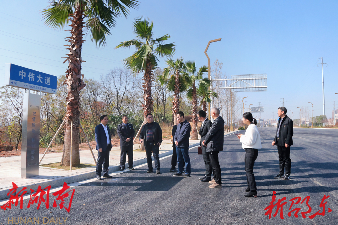 中伟大道起于百富路与建设北路交会处,止于绿汀大道,全长2.1公里,是邵东市为缓解城区交通压力,新建的一条城市次干道,也是乡贤建设家乡的典范项目。目前,该道路已基本完工,即将通车。黑油油的沥青路面,独具特色的路灯以及只有在热带街头才能看到的行道树,形成了一道亮丽的城市风景线。李国军强调,中伟大道进入最后的冲刺收尾阶段,相关单位要全力支持,将它建设成一条民生大道、形象大道、发展大道,一条连接故土、维系乡情的“精神大道”。