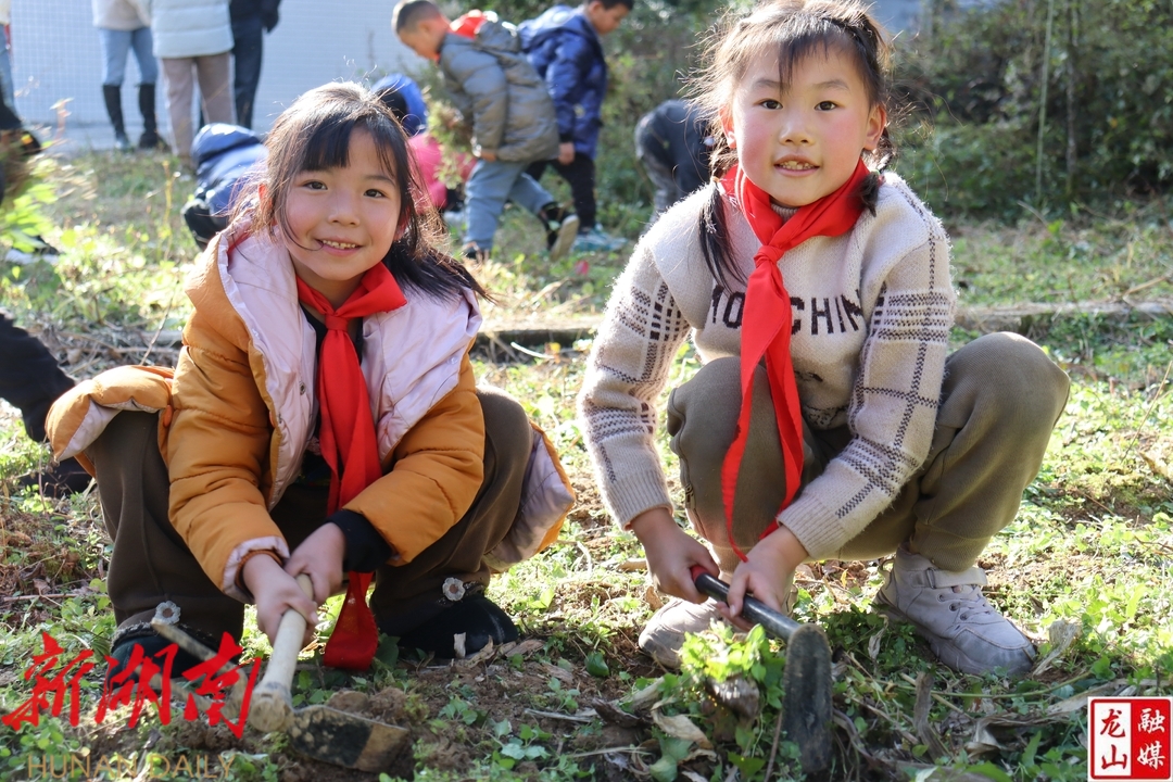 龙山县融媒体中心12月8日讯(通讯员 彭杰)12月7日,大安小学的学生们撸起袖子,拿起小锄头,戴好手套,共赴校园劳动基地,开展劳动实践活动。