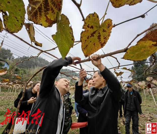 11月29日下午,县社会组织孵化基地联合党支部书记对太平山村50亩高山刺葡萄村集体经济进行冬季现场修剪指导,同行的30余名党员群众对高山刺葡萄有了新的认识:高山刺葡萄 高产、抗旱抗涝、抗病虫害能力强,口感鲜甜,还可以酿造葡萄酒,增加附加值。