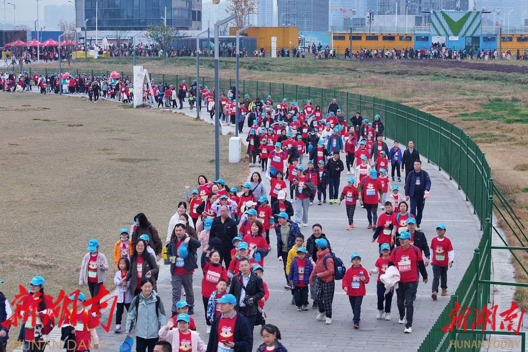 湖南日报·新湖南客户端12月10日讯(记者 蔡矜宜 摄影 辜鹏博)今天上午8时许,长沙市第十一届全民健身节暨2023长沙(冬季)走娃少儿健走大赛在马栏山鸭嘴公园鸣枪开走,4800人沿浏阳河、湘江毅行12公里,以“运动+亲子”的方式拥抱母亲河。