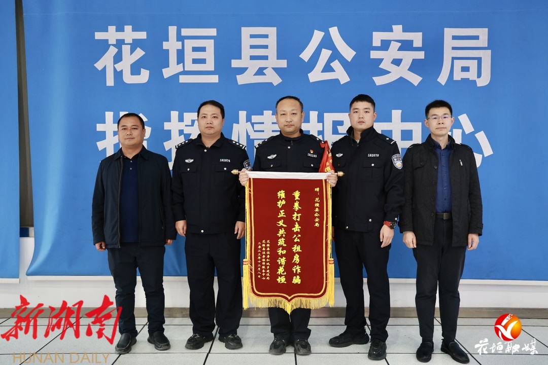 12月8日上午,花垣县住房和城乡建设局与住房保障服务中心的工作人员向花垣县公安局民警送去一面锦旗,锦旗上写着“重拳打击公租房诈骗,维护正义共筑和谐花垣”字样。