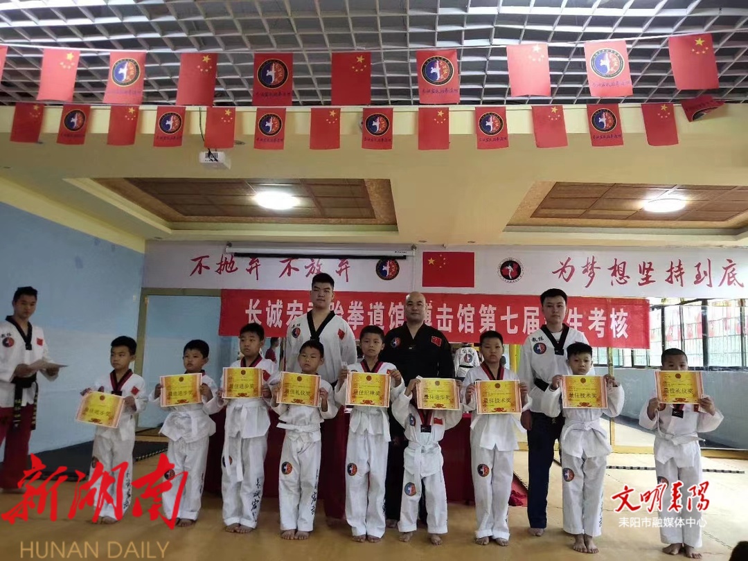 直冲拳、下格挡、中格挡、上格挡……在耒阳长诚宏武跆拳道馆,身着白色跆拳道服的学员们,正在有板有眼地进行攻防,呼呼哈嘿、虎虎生风。旁边,教练员的指导声、家长的加油声此起彼伏、响彻场馆。