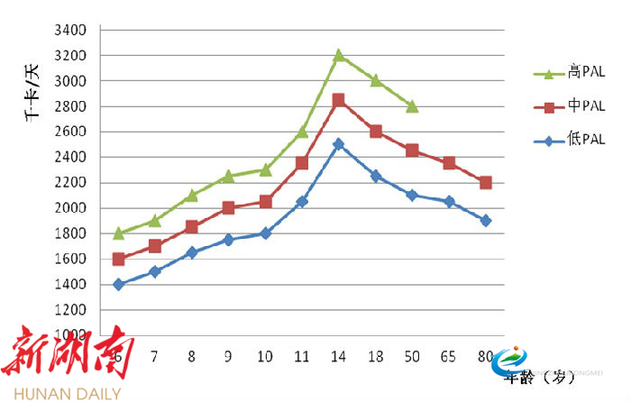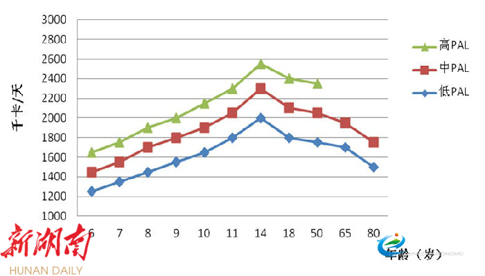 图1 中国6岁以上人群不同身体活动水平(PAL)下能量需要量