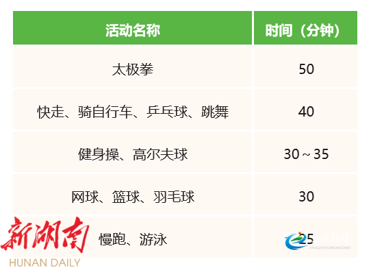 表3 成年人每天身体活动量相当于快走6000步的活动时间