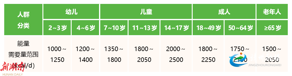 参照膳食营养素参考摄入量,简单地根据年龄、性别和身体活动水平确定能量需要量范围,如表3,据此明确一天需要的食物品类和数量。