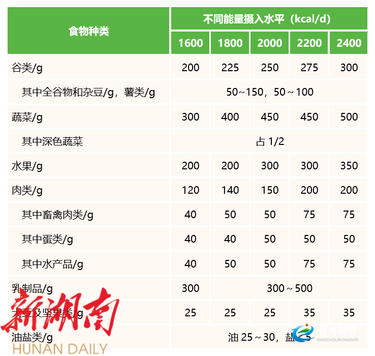 表1 平衡膳食宝塔的各类食物量