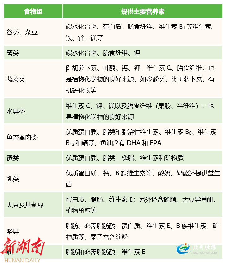表2 各类食物提供的主要营养素