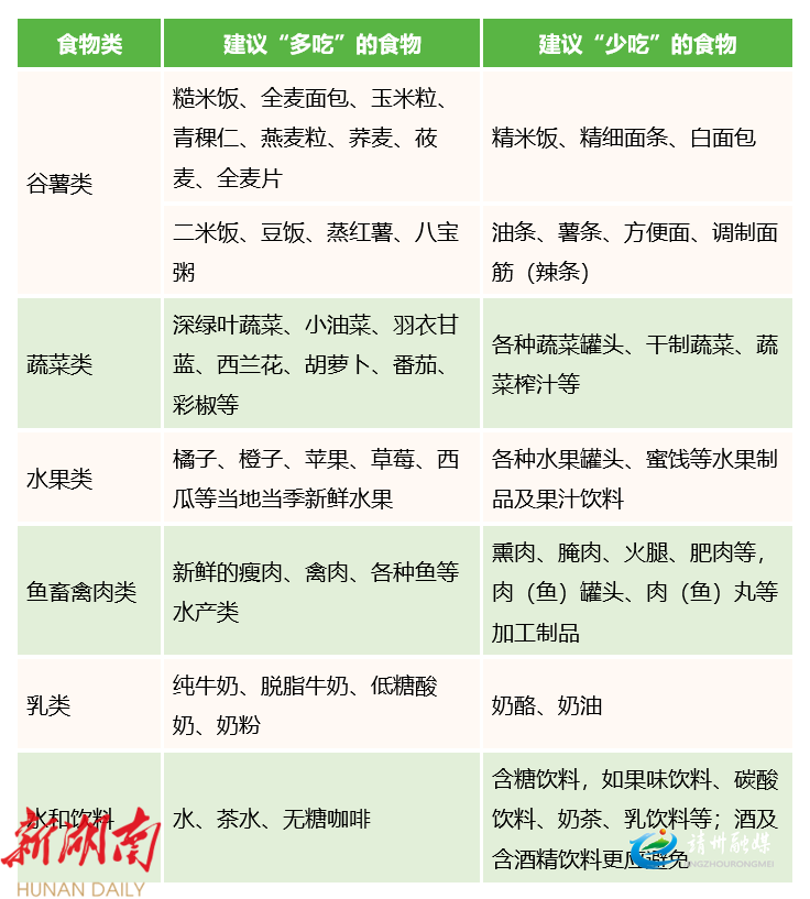 表4 建议“多吃”和“少吃”的食物举例
