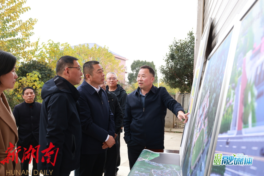 朱平波(前排右二)察看城南学校片区改造规划图纸