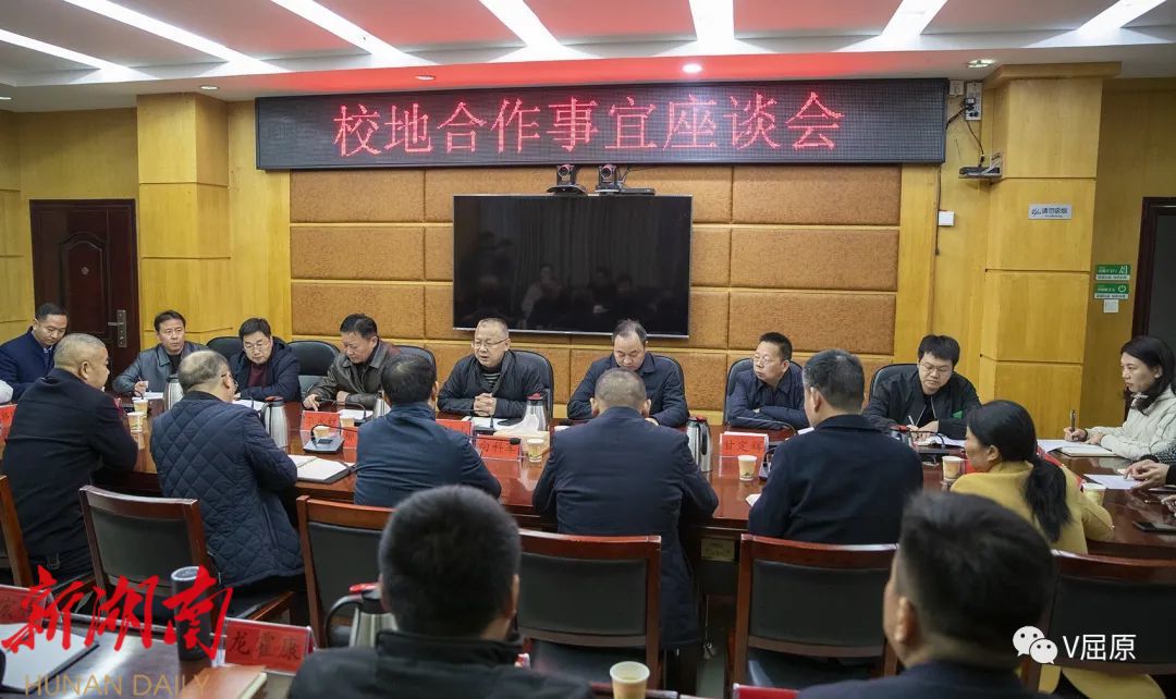 在随后召开的校地合作事宜座谈会上,双方就岳阳职业技术学院在屈原管理区党委党校校址建办分校事宜,从加强校地合作、明确未来合作方向和模式、如何完善合作机制、促进科技成果转化,实现互利共赢、共同发展的良好局面等方面进行了深入座谈交流,交换意见。