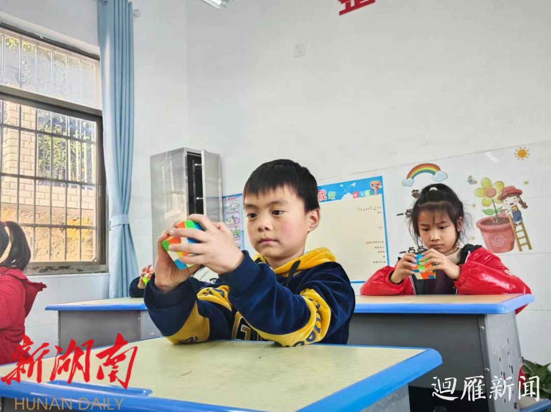 该校还组织学生开展了一场速度与智力并重的魔方比赛。参赛选手们脑力全开,指尖纷飞,左旋、右转,小小魔方在孩子们的手中绽放出无限的魅力。