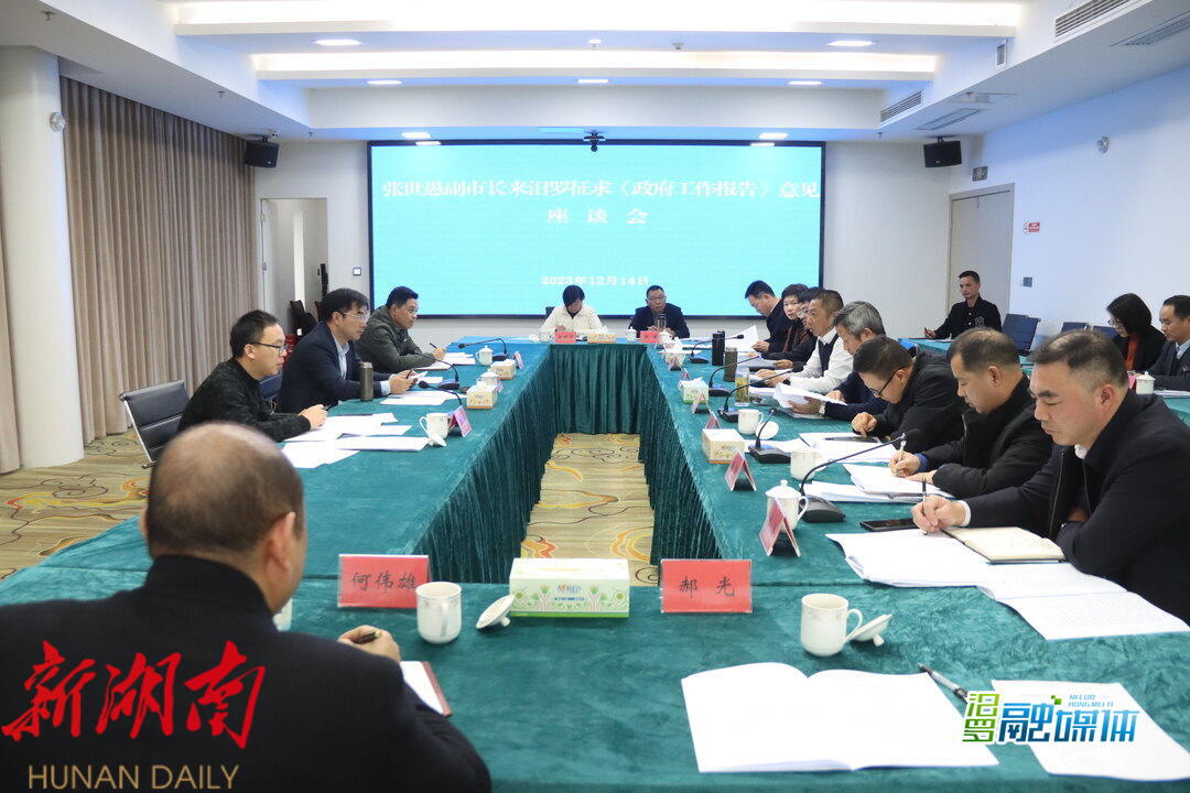 湖南日报·新湖南客户端12月15日讯(通讯员 谢建)12月14日上午,岳阳市副市长张世愚一行来汨罗召开座谈会,就《岳阳市政府工作报告(征求意见稿)》征求意见建议。汨罗市级领导朱平波、林恒求、何厚德、易万、易红、张勇,市经研中心相关负责人及部分岳阳市级人大代表、政协委员参加。