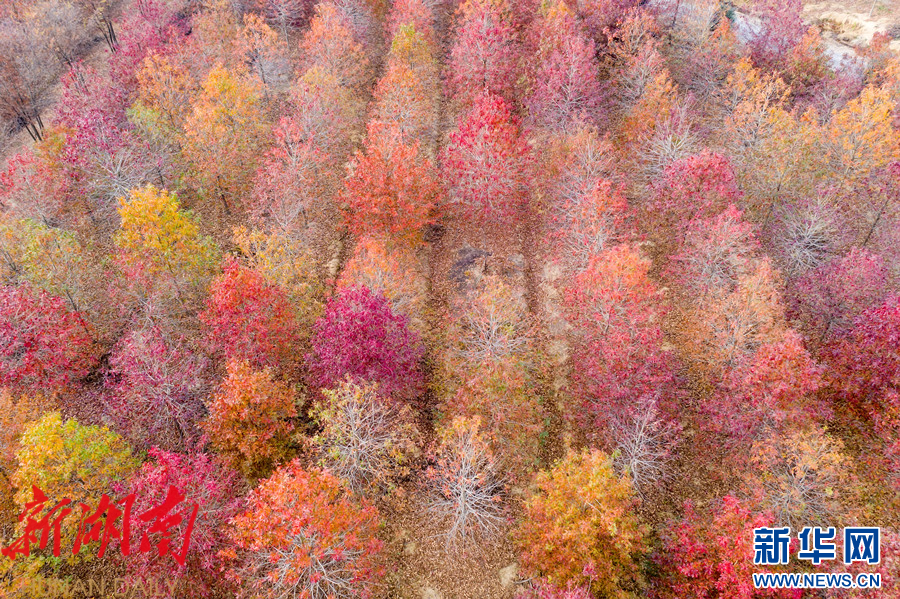 冬日里,江苏句容白兔镇西井村成片的娜塔栎树开始华丽“换装”。
