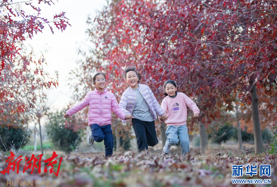 孩子们在娜塔栎林下追逐嬉戏,感受冬日的美好和欢乐。(崔雯雯 报道员:陈洪泽 汪超 拍摄支持:句容市税务局)