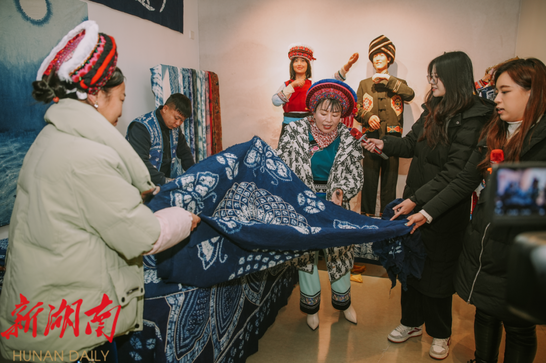 “白布在扎染后会绽放出独一无二的色彩。”“解开扎结时像不像拆盲盒?”来自“白族扎染之乡”——云南省大理市喜洲镇周城村的张丕和老师在桑植白茶馆扎染展厅,向五位桑植旅游形象宣传大使和直播镜头前的朋友们现场讲解了扎染捆扎手法、演示了扎染技艺。张丕和老师细致的讲解,让桑植旅游形象宣传大使们纷纷感慨,跟着张老师不仅学习到了扎染的制作流程,还更进一步了解到了白族扎染的历史文化内涵。同时,直播间里还吸引了一大波对扎染技艺感兴趣的桑植网友和外地网友,网友们纷纷留言向张丕和老师请教扎染上的一些疑问,不少人在留言中表示感受到了白族扎染的魅力,有机会一定要亲自体验一次扎染。