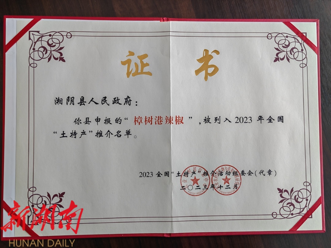 湖南日报·新湖南客户端12月17日讯(通讯员 徐晚晴 任艳芳)12月16日,2023全国“土特产”集中推荐活动在云南省大理州大理市开幕,湘阴樟树港辣椒作为湖南7款“土特产”之一在推介会集中展示展销。