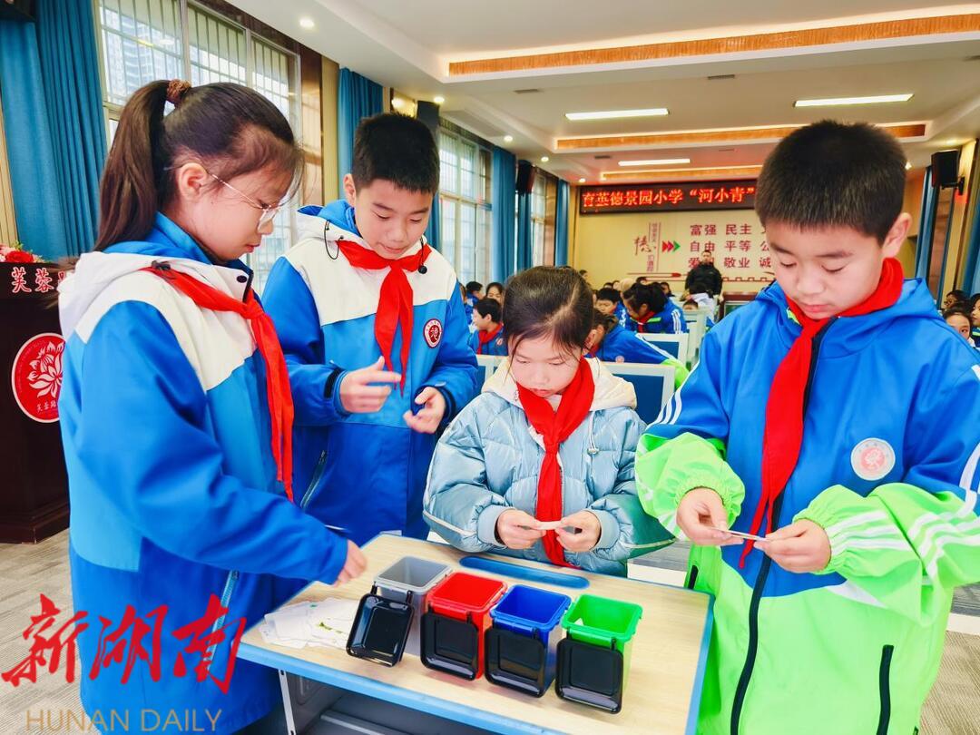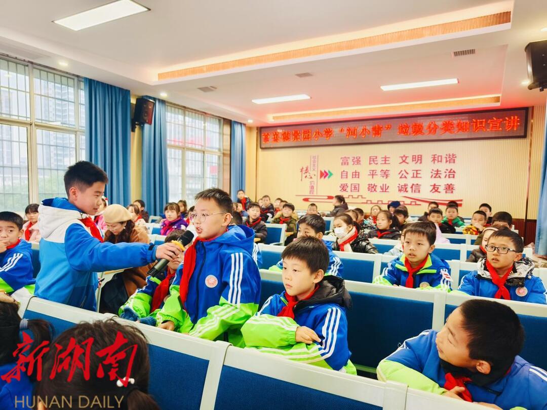 12月15日下午,武陵区育英德景园小学“河小青”宣讲团的志愿者们前往芙蓉路小学,开展“青·趣分类”青少年生活垃圾分类宣讲活动。