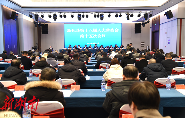 湖南日报·新湖南客户端12月21日讯(通讯员 邹畅宁 刘文)12月19日,新化县第十八届人大常委会召开第十五次会议,评议副县长张政兵、罗轶民分管工作和6个县政府工作部门负责人履职情况,审议有关人事任免事项。县委书记李铁雄,县委副书记、县长左志锋出席并讲话,县委副书记、县委政法委书记李峰出席,县人大常委会主任杨韶红主持会议,县领导陈国聪、周建设、彭小瑜、曾令斌、曾欣华、曾朝辉、朱吉良、钟英姿等出席,副县长张政兵、罗轶民、陈元怀、刘志军,县政协副主席罗忠庆、县人民法院院长谭志强、县人民检察院检察长刘誉荣、县移民局局长吴春松等列席会议。