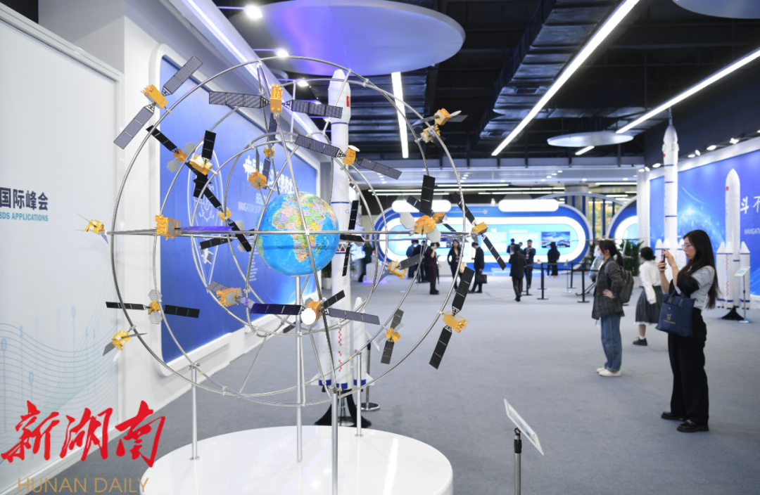 10月26日,在株洲国际会展中心,观众在观看北斗系统组网模型。湖南日报全媒体记者 田超 赵持 摄