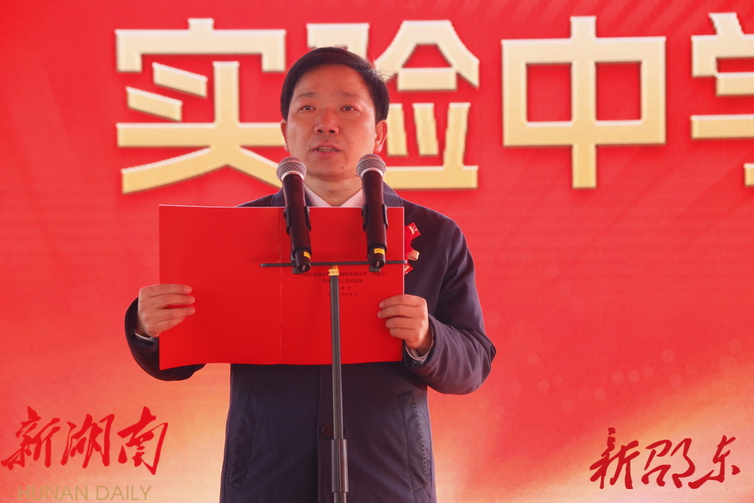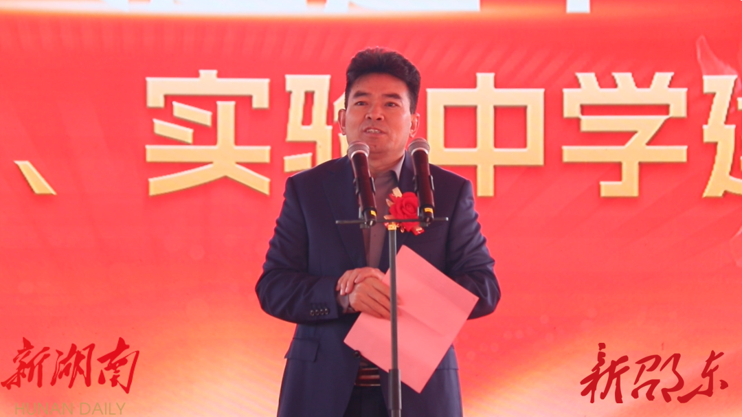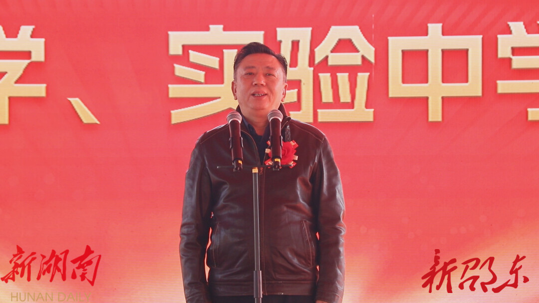 邵东市委副书记、统战部长刘家豪主持中伟大道通车暨中伟梅岭实验小学、实验中学建设开工仪式。