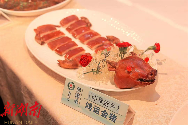 新桂阳12月27日讯(记者 陈勇)“没想到湘南地区居然有这么多美食。”第一次参加湘南名菜交流会的广东连州厨师邵德勇,在现场感受了不一样风土人情,更为湘南名菜的特色所折服。12月26日,湘南名菜交流会暨桂阳县十大名菜技能竞赛在桂阳金都汇酒店举行。蒜蓉蛋卷、大师片皮鹅、鸿运金猪……一道道色香味俱全的名菜新鲜出炉,不断散发出香气,撩拨着参会嘉宾的心和味蕾。