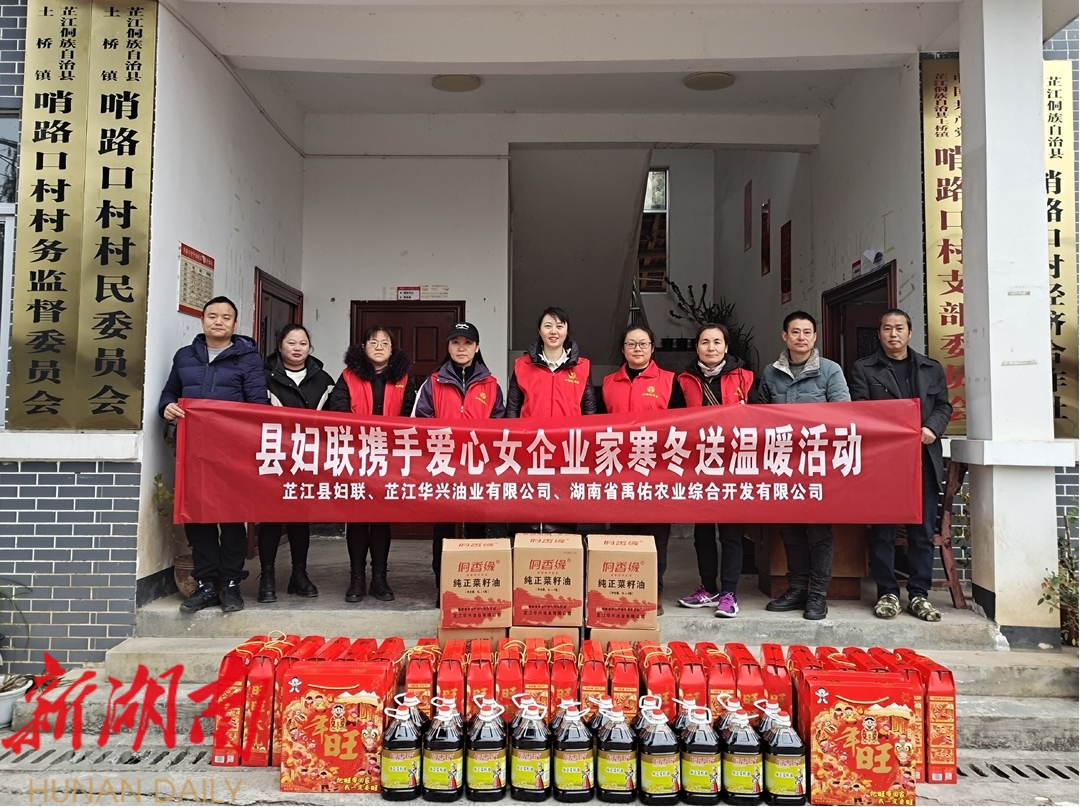 湖南日报·新湖南客户端12月27日讯(通讯员 刘雨菲 蒲晃晃)元旦将至,岁寒情深。为进一步关心关爱困境妇女,把党的关怀、妇联组织的温暖送到了群众手中,12月26日,芷江妇联携手芷江华兴油业有限公司、湖南省禹佑农业综合开发有限公司在土桥镇哨路口村开展“寒冬送温暖”爱心帮扶慰问活动。