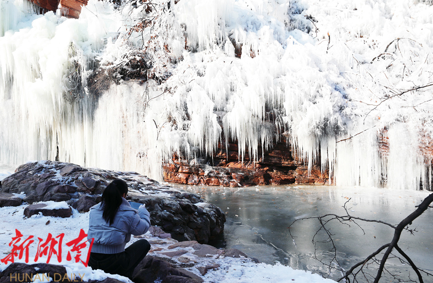 人民网郑州12月27日电(霍亚平)近期随着气温持续走低,位于河南郑州的伏羲山长达5公里的瀑布群逐渐被“冰封”,形成了壮观的冰瀑群景观,造型各异的冰瀑、冰挂,层层叠叠如玉雕般被定格在崖壁之上,吸引众多游客前来观赏。