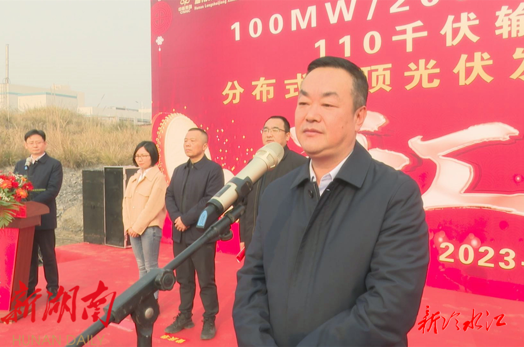 冷水江市委副书记、市长陈创业宣布:”我宣布,冷水江经开区集中式储能、110千伏输变电工程和分布式屋顶光伏项目开工。“