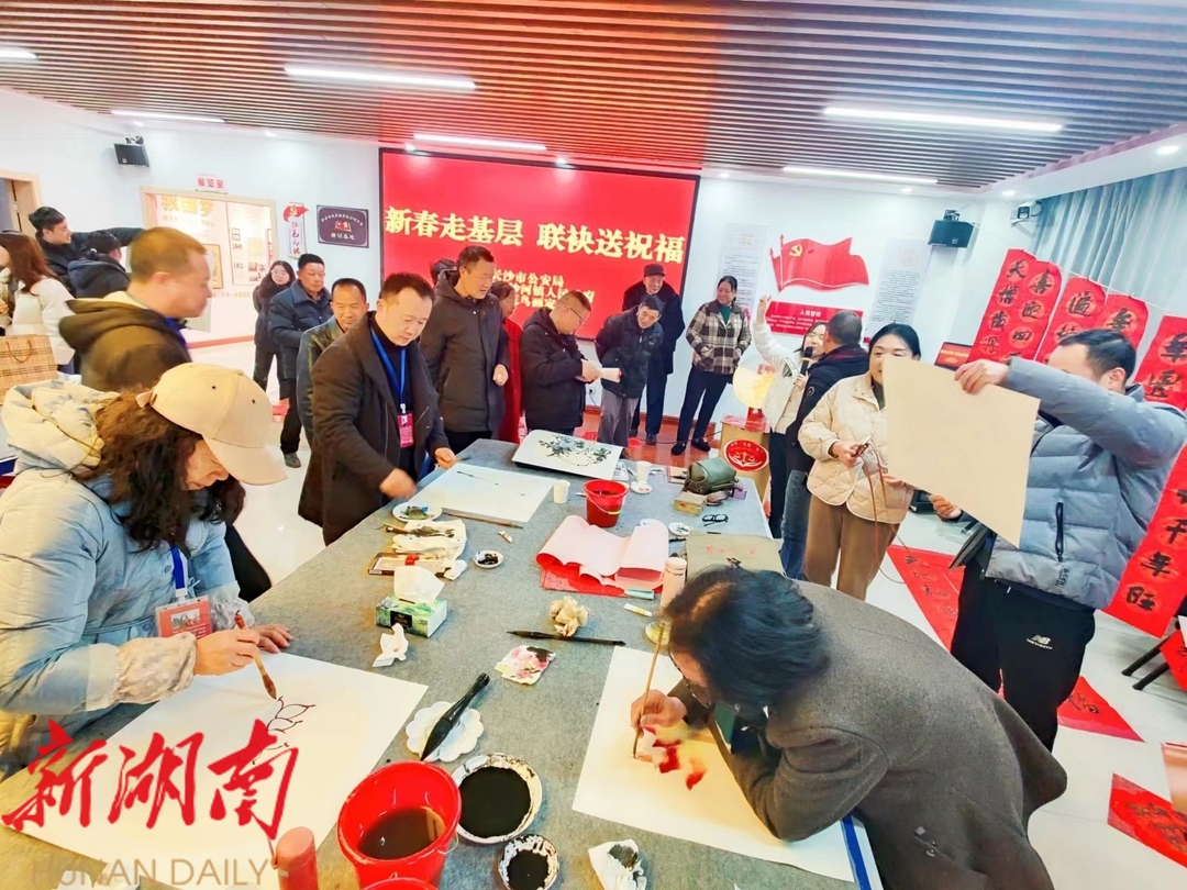 湖南日报·新湖南客户端12月30日讯(通讯员 张良友 稂雄伟)“这幅书法作品,我要马上去裱起来,以后放我儿子新房,这可是省城来的画家送的”。12月28日,宁乡市流沙河镇码联村喻大爷高兴地对村干部说。