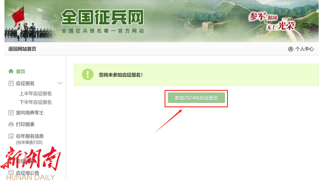 4、登录系统以后,点击“参加2024年应征报名”,根据所提示的信息进行填写就可以啦! 完成以上步骤,就报名成功啦! 1