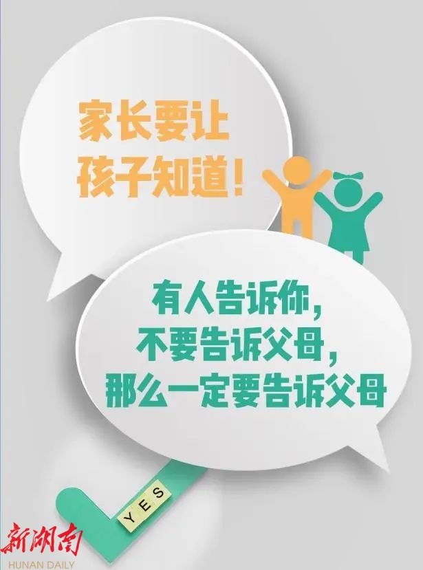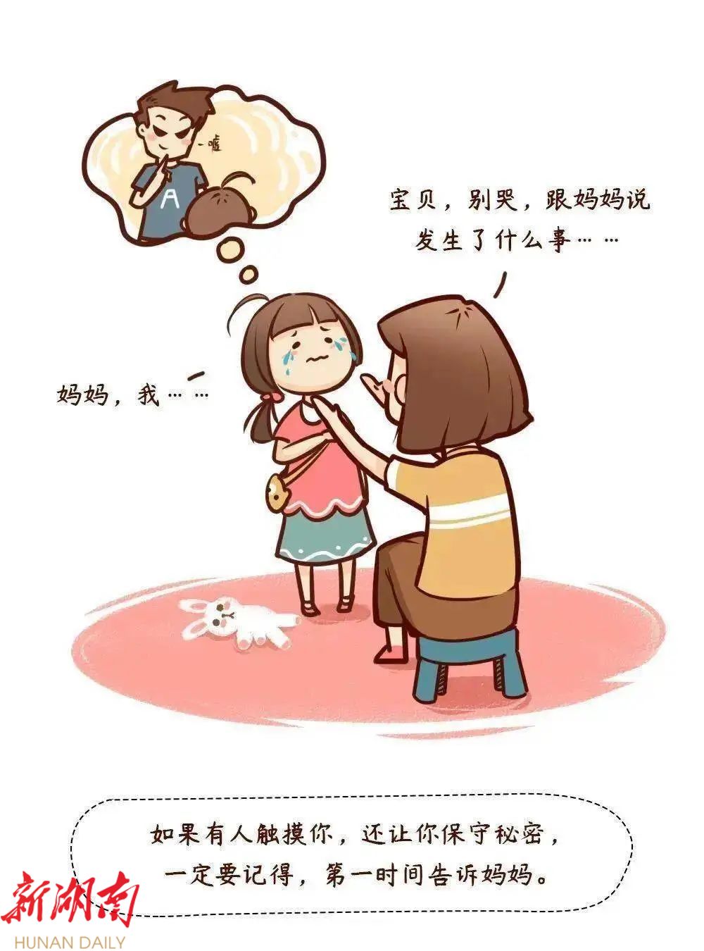 给孩子强调: 不要为坏人守秘密,爸爸妈妈会保护你。如果有遭受侵害,一定要第一时间和爸爸妈妈说出真相!