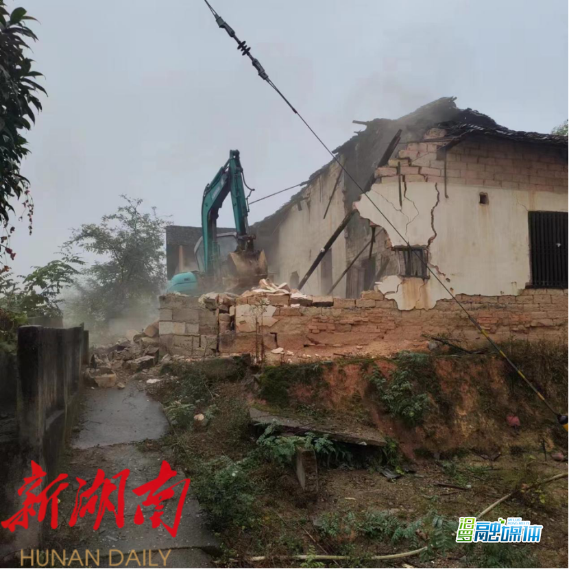 在兰溪村,伴随挖掘机一声声“轰隆隆”的作业声,该村一栋长久未住人的危旧老房也应声倒地。