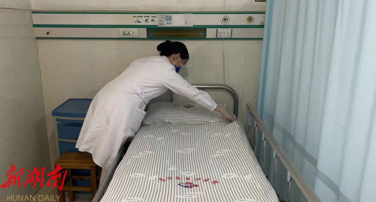 医院为患者换上新床垫。均为星沙医院供图