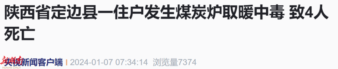 紧急提醒!又是一氧化碳中毒,4死1伤!