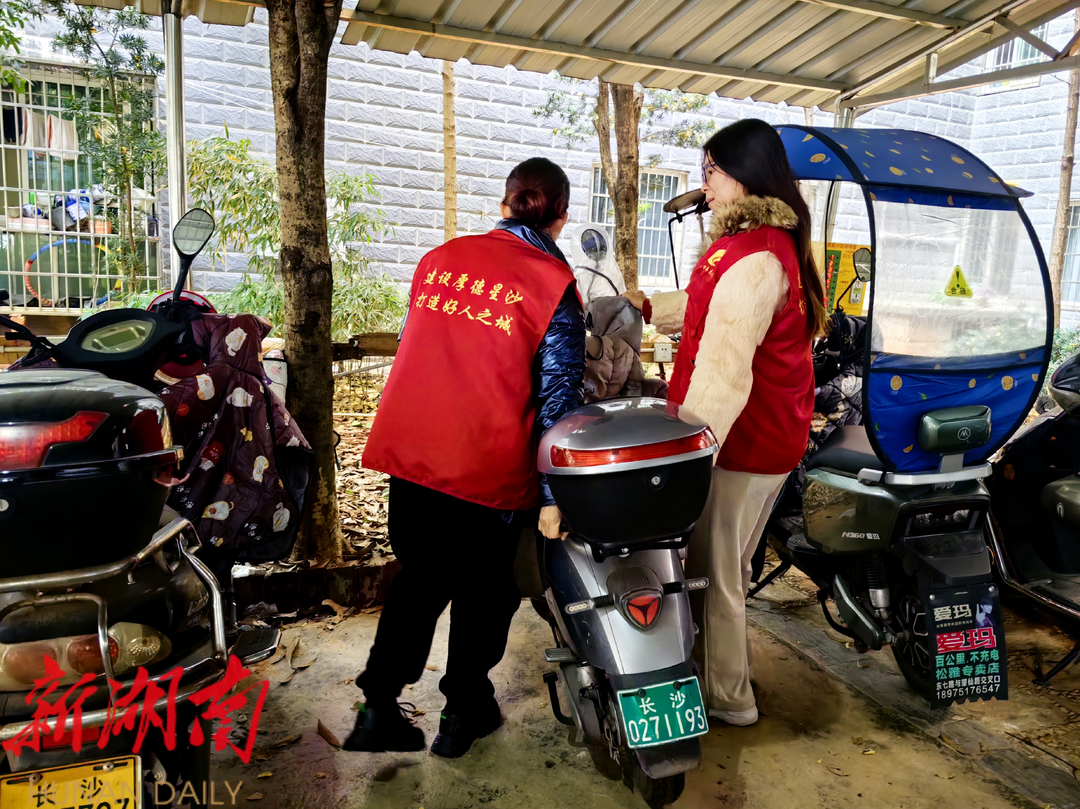 为此,小区联合党支部联合业主委员会、物业公司多次召开议事会,商讨解决问题的办法,最终决定采取“建管结合”两步走的措施:一是因地制宜新建电动停车棚;二是结合“敲门行动”,组织志愿服务队开展安全宣传、巡查整治。