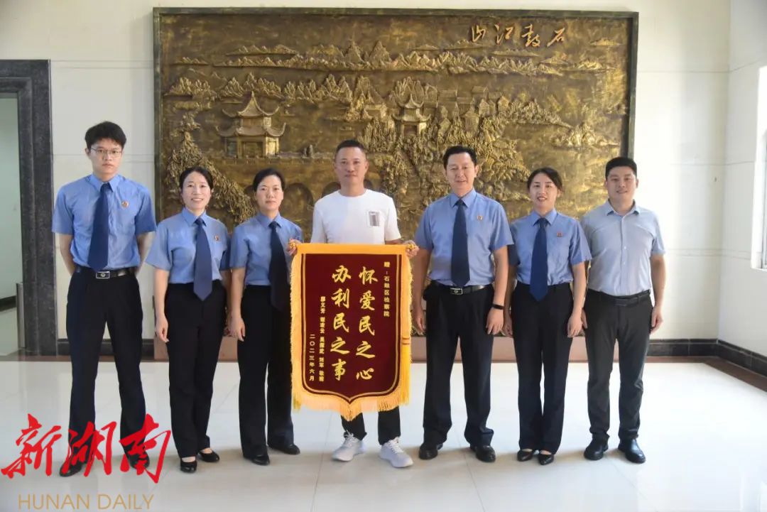 判决落地,心怀感激的挖机师傅们特地定制了一面锦旗,送到检察院。